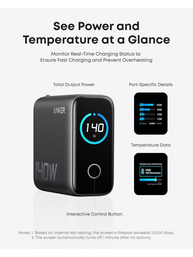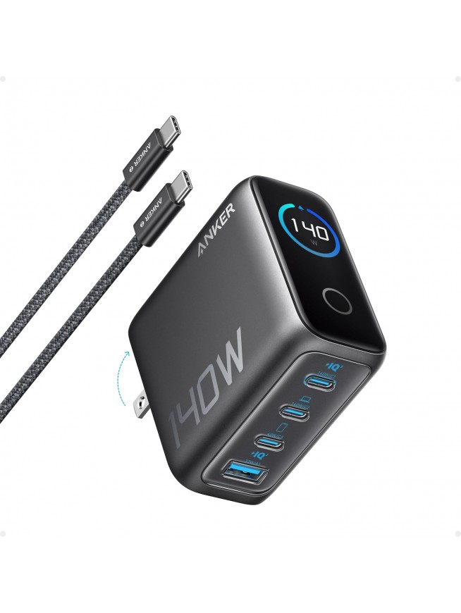 Anker Laptop Charger, 140W MAX USB C Charger, 4-Port Multi-Device Fast Charging, Advanced GaN Power Adapter, Intuitive Touch Controls